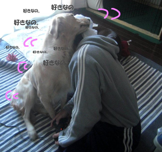なんて、床に座ろうもんなら即効ミルのラブラブ攻撃