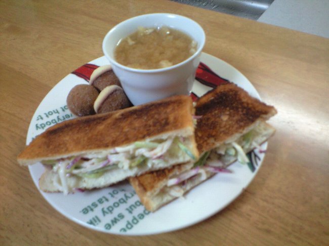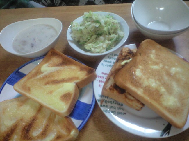ガーリックマヨトースト、チキンクリームスープ、ノンオイルのポテトサラダ^^