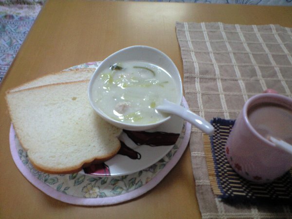 豆乳パン、白菜のクリームスープ(豆乳仕立て)