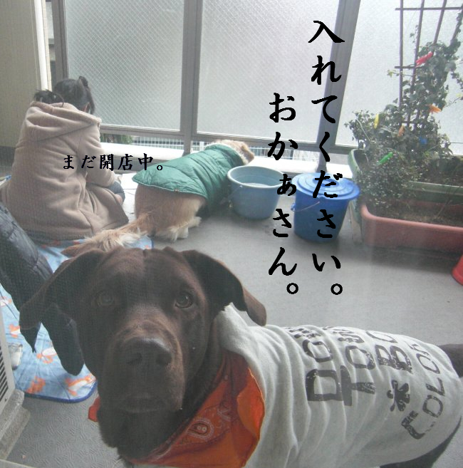 あーちゃんは開店準備をして、なぜか寒いベランダへσ( ̄∇ ̄;)