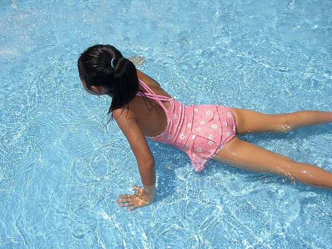 小さな水たまり・・?みたいな遊び場で遊ぶあーちゃん